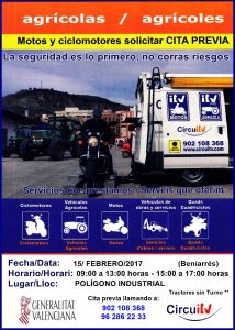 Pedir cita previa llamando al: 902 108 368 o al 96 286 22 33 (Tractores sin turno)